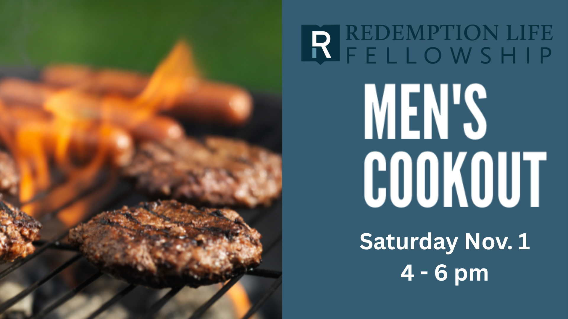 Men! Please join us for a Cookout - we'll have food, games, fellowship, and some testimonies from a few of our guys. Burgers and hot dogs will be provided - after you register you can sign up to bring something (condiments, drinks, sides, dessert, etc.) Bring a chair, and yard games if you have them.